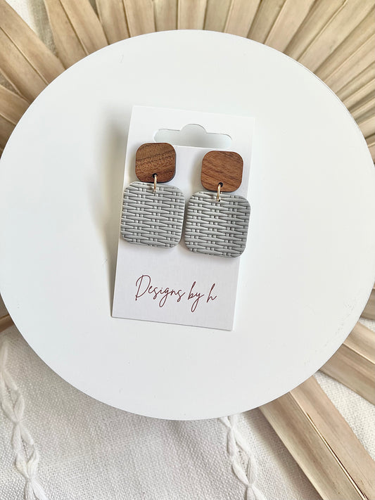 Square Rattan Textured Wood dangle